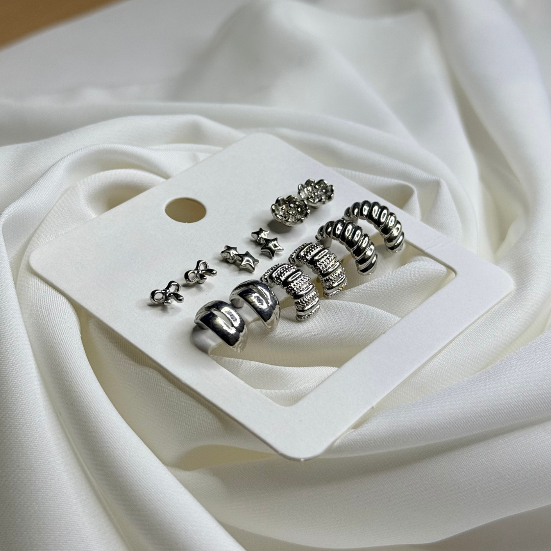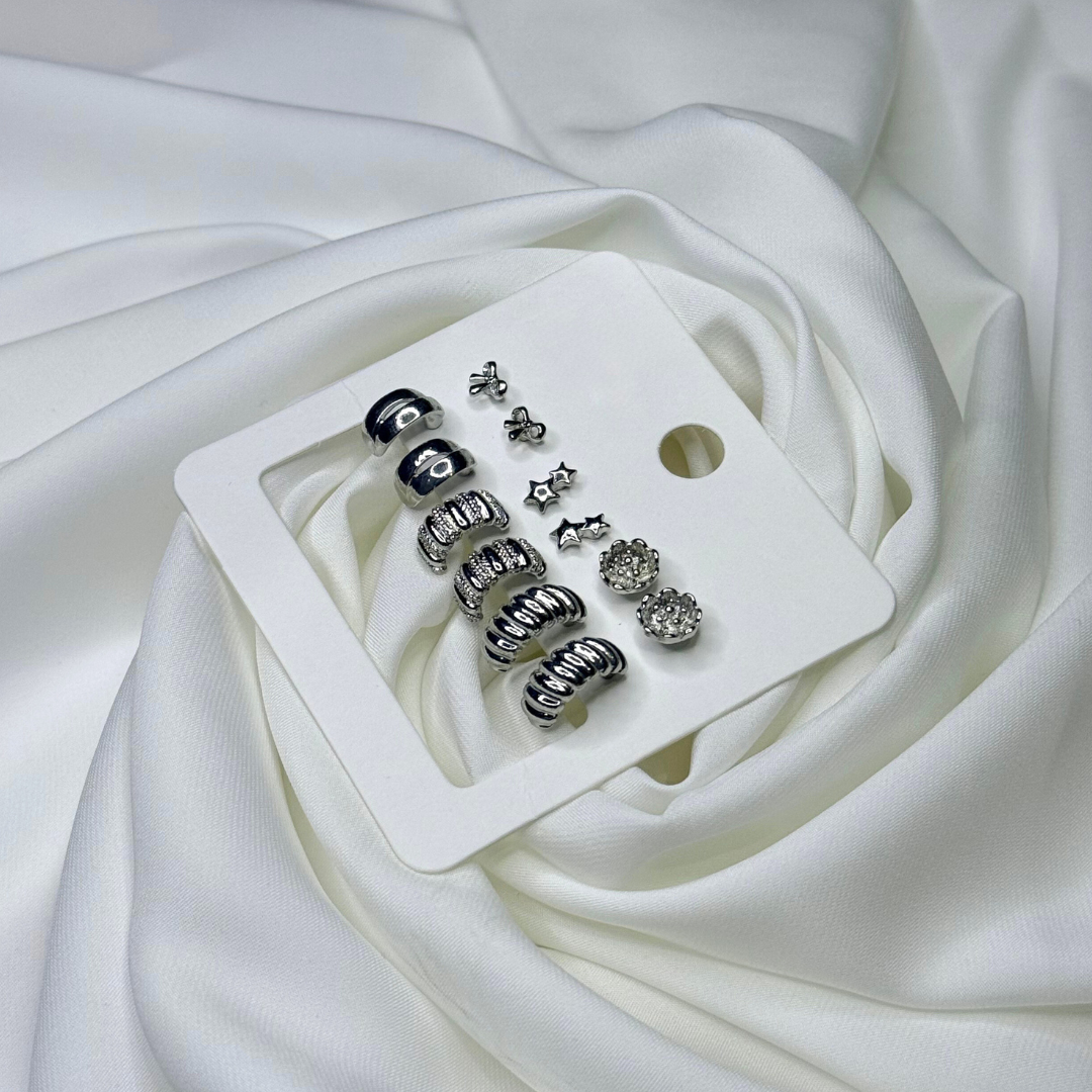 A statement mix of chunky silver studs with a sleek metallic finish—bold, edgy, and stylish.