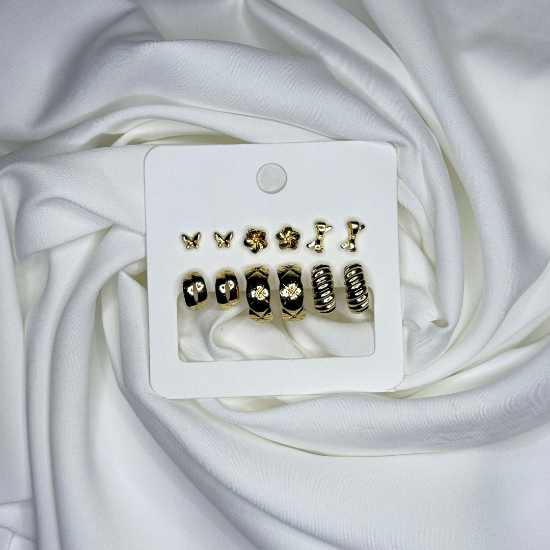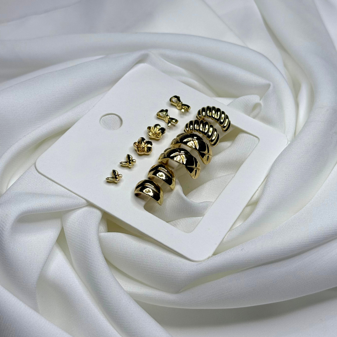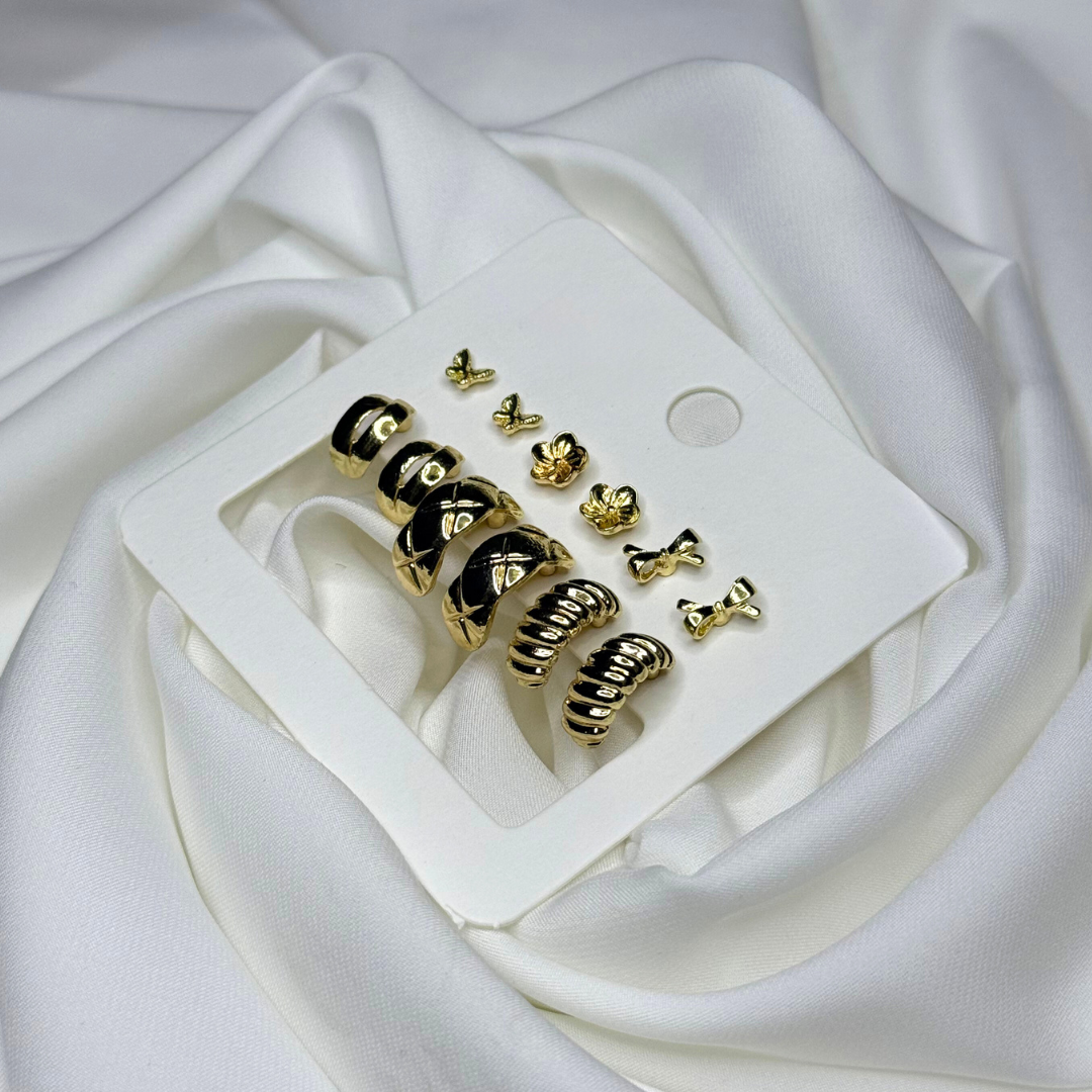 A clean, everyday gold set featuring timeless stud shapes—easy to pair with any outfit.