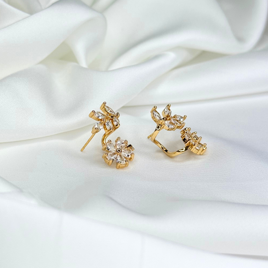 Delicate floral clusters crafted with a blend of gold plating and tiny crystals—perfect for weddings, events, or elevating daily style.
