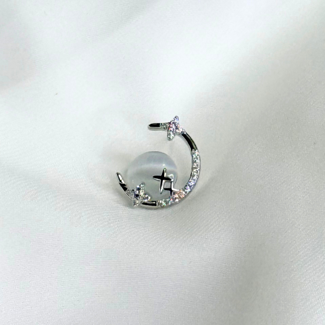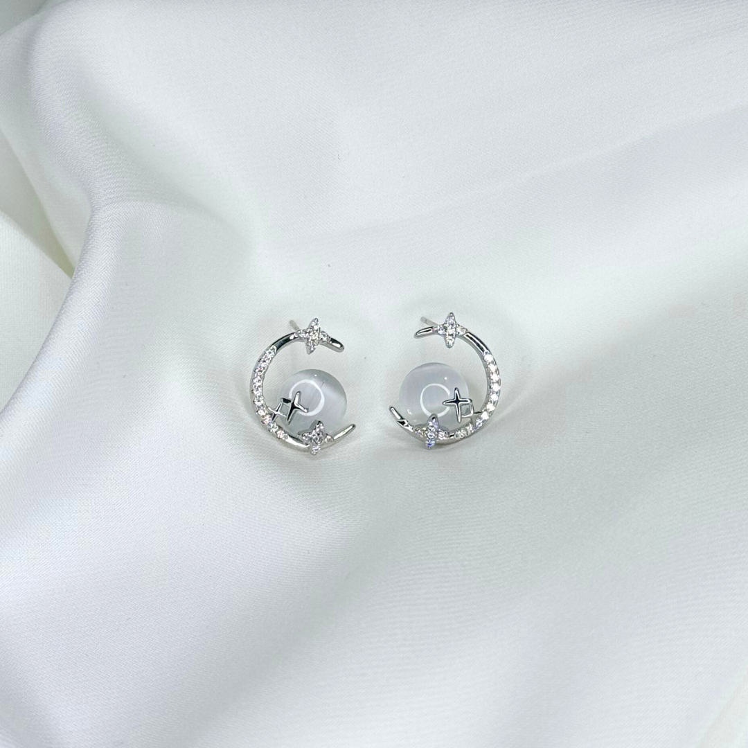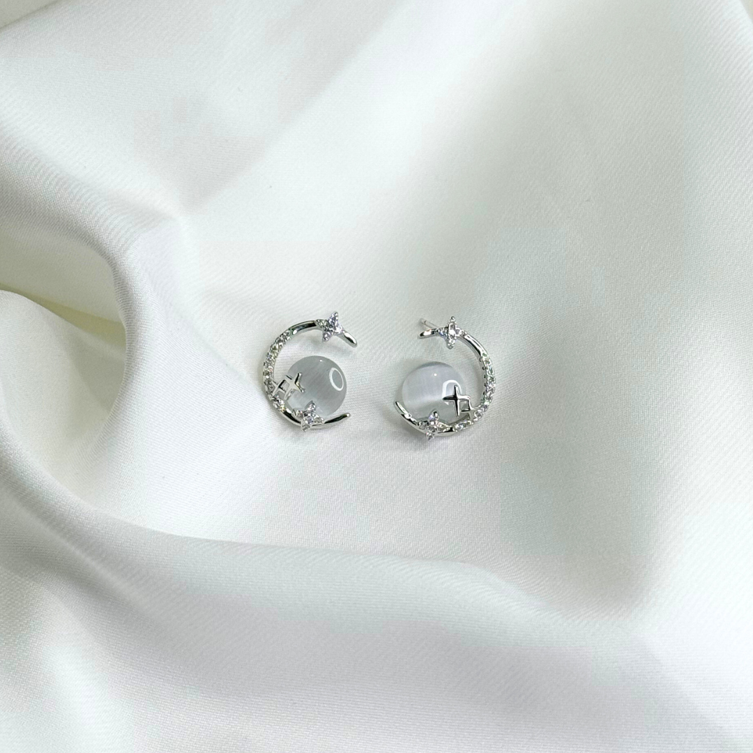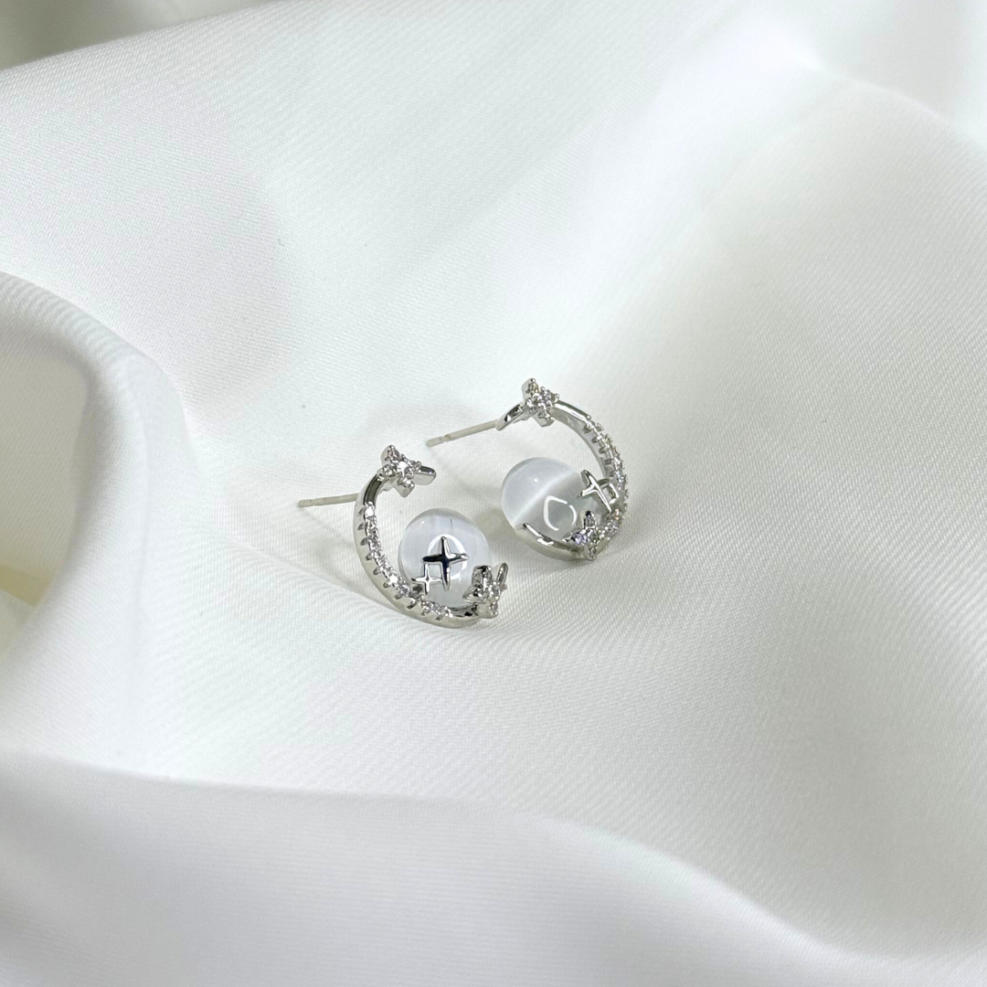 Modern and celestial, these curved hoops feature a soft spherical center and crystal accents—ideal for unique, dreamy styling.