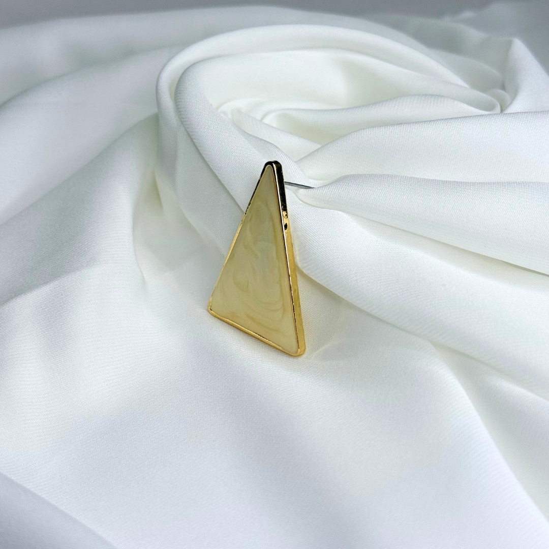 The Butter Gold Triangle Studs feature a smooth marbled texture enclosed in a polished golden frame. A modern geometric style with a soft, elegant finish.